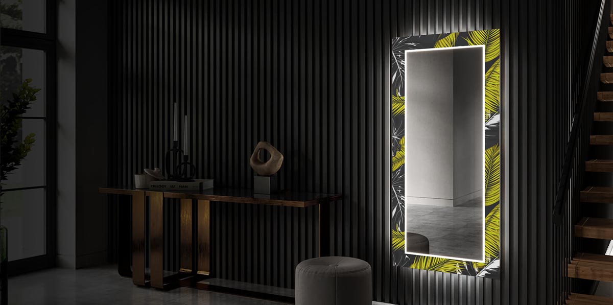 Tagantjärele valgustatud dekoratiivne peegel koridori jaoks - Kuldne džungel