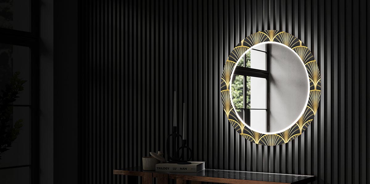 Tagantjärele valgustatud dekoratiivne peegel Led koridoris - Art Deco